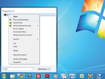 Click Start, type "cmd", then right-click cmd.exe and choose Run as Administrator > Continue. Type "sfc /scannow" and press [Enter] to check your entire drive.
