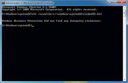 Alternatively, type "sfc /SCANFILE=path \fi lename" and press [Enter], replacing path\fi lename with your chosen fi le – such as c:\windows\system32\riched32.dll.