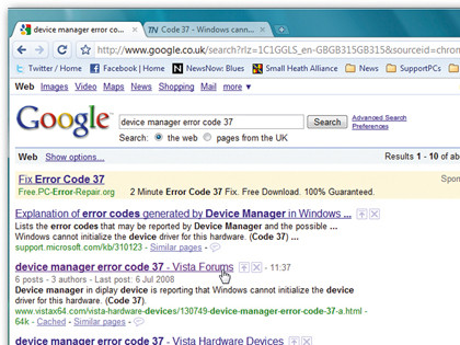 If no fix is forthcoming, use the error details as part of your web search – try a general search first, then add your hardware's make and model if necessary.