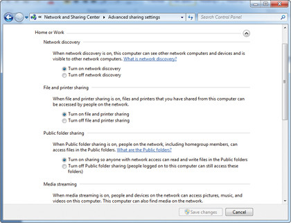 Check from the Network and Sharing Center in Vista/Windows 7 – ensure your network is Home or Work. In Windows 7 click Choose homegroup and sharing options > Change advanced sharing settings; in XP right-click a folder and choose Properties > Sharing tab.