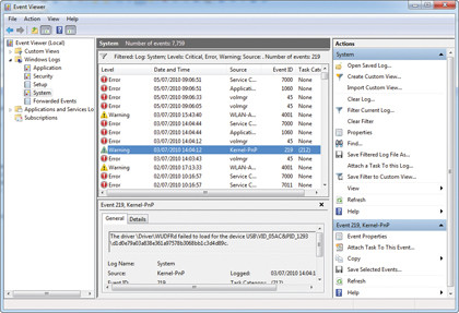 Click Filter Current Log, tick Critical, Error and Warning and click OK. Click an event that occurred around the time of your problem: each event will provide more information about your problem – if there's a link to more help online, select it.