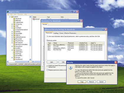 With MenuOrder selected, choose Edit > Permissions. Click the Advanced button and remove the tick next to "Inherit from parent the permission entries…". When prompted click Copy > OK, to close the Advanced Security Settings window.