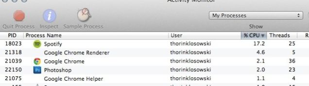 3.Now go about your daily usage. If the beach ball comes up, switch over to Activity Monitor and see which app is taking up the biggest CPU load (oftentimes this will spike at 100%).