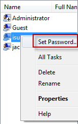 8. Select the user whose password you want to reset and right-click it.