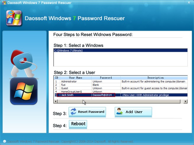 2) Install and launch Daossoft Windows 7 Password Rescuer.